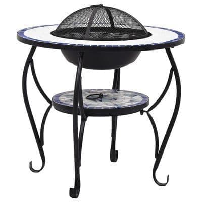 Mosaic Fire Pit Table Blue and White 68 cm Ceramic