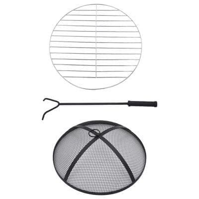 Made of steel, the fire pit bowl is excellent in absorbing and radiating heat. It can be used to burn dry wood, logs or charcoal. The fire pit is supported by a four-leg stand. The included safety mesh allows you to watch the burning fire, and encloses the fire for safety as well as preventing sparks and debris flying out. The poker tool can be used for both removing the mesh cover and rearranging the logs or coal. Additionally, the fire pit table can also be used as a barbecue. Its round ceramic surface offers a perfect place for drinks and roasting supplies.