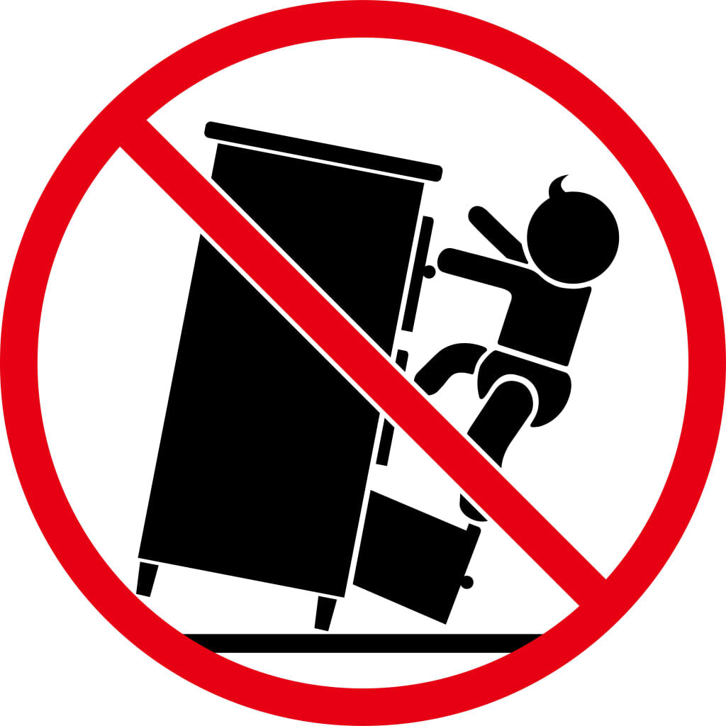 - To prevent it being overturned, this product must be used with the provided wall attachment device.