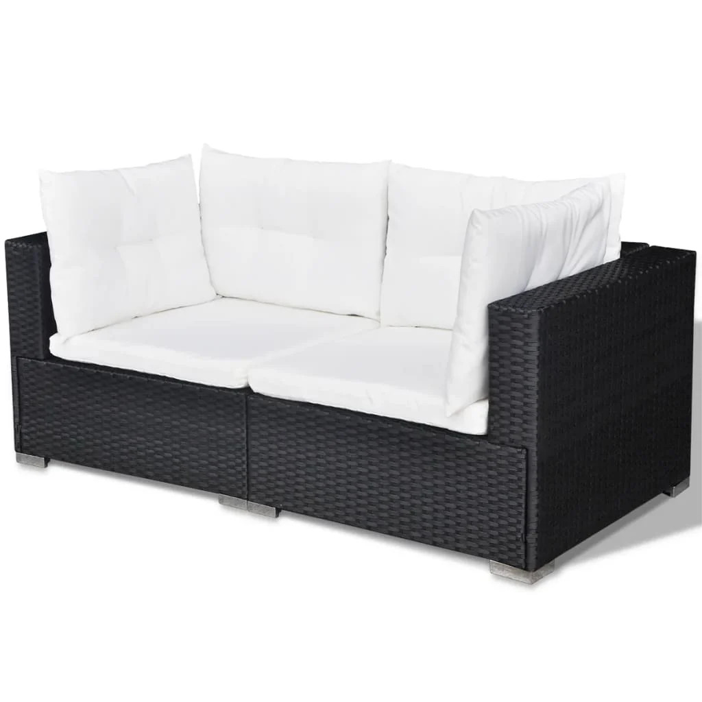 Delivery includes 2 corner sofas, 1 centre sofa, 1 stool, 1 coffee table and 9 cushions. Note: We recommend covering the set in the rain, snow and frost.