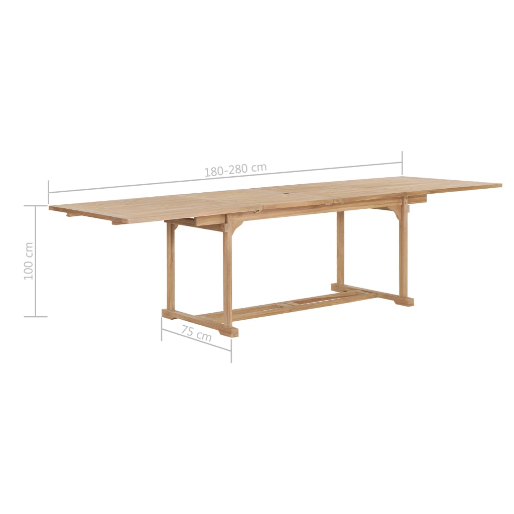 - Table dimensions: (180 - 280) x 100 x 75 cm (L x W x H)