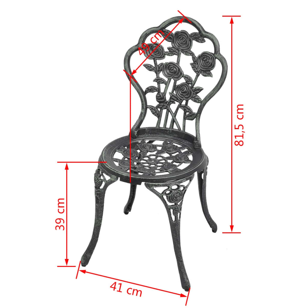 This set of bistro chairs will make a decorative addition to your garden, patio, or balcony with their ornate floral details. It will be a pleasure to have a cuppa with your friends sitting on these chairs!