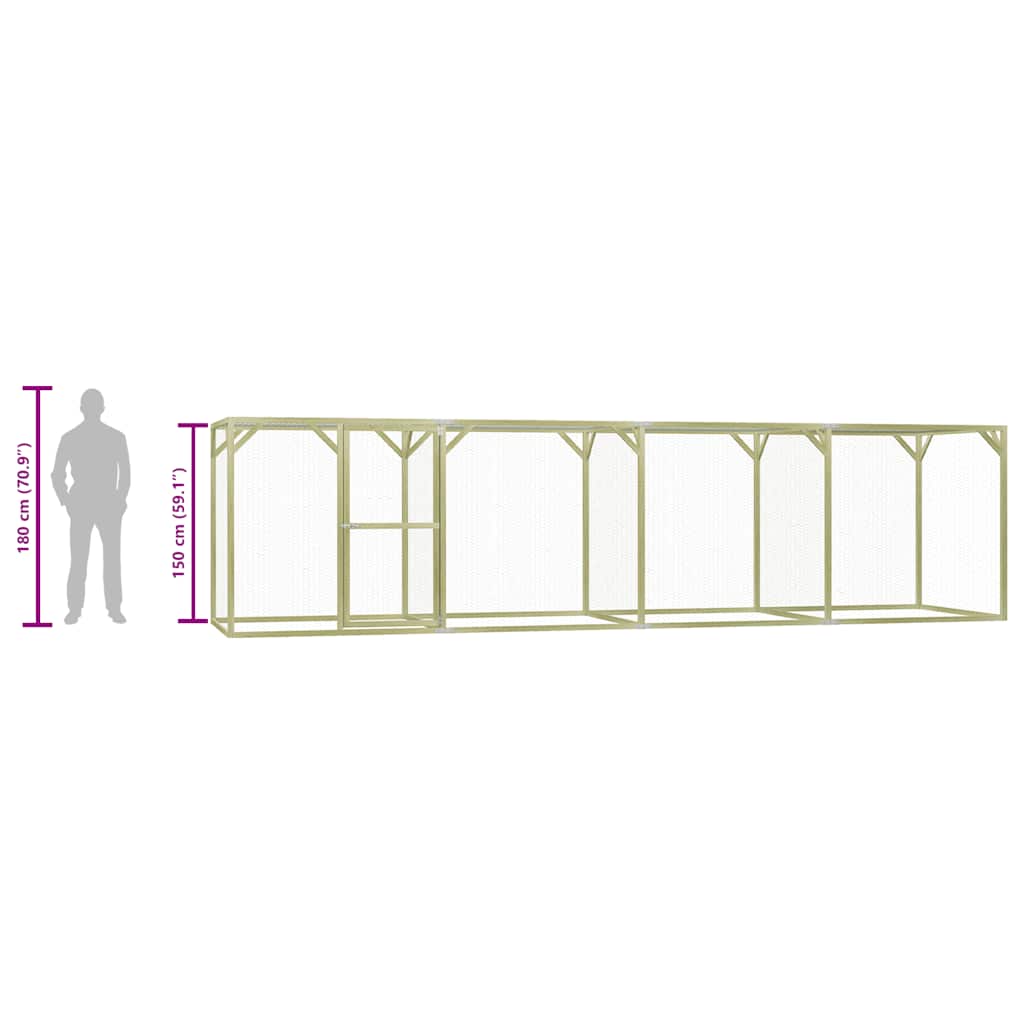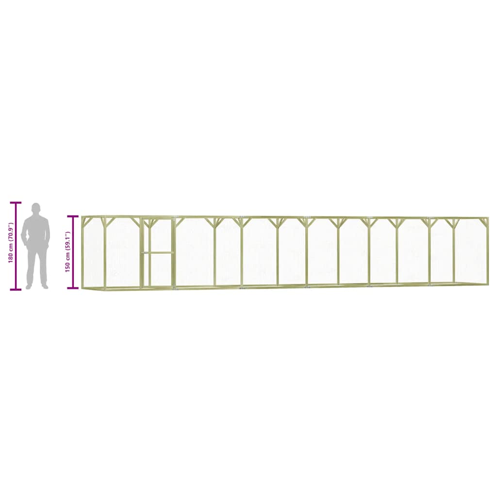 Crafted from impregnated pinewood, the hen house is exceedingly durable, weather and rot resistant. Equipped with a lock, the gate features an easy-to-open lockable door with included latches. Additionally, thanks to the galvanised steel wire grid, it allows you to keep an eye on your animals. The chicken cage needs to be assembled.