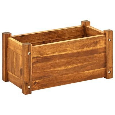 Made of high-quality acacia wood, this planter is very sturdy and durable. This box planter is also oil finished to give the wood a warm, rustic colour. The bottom of the planter is slatted and lined, which keeps the soil in and allows excess water to drain.