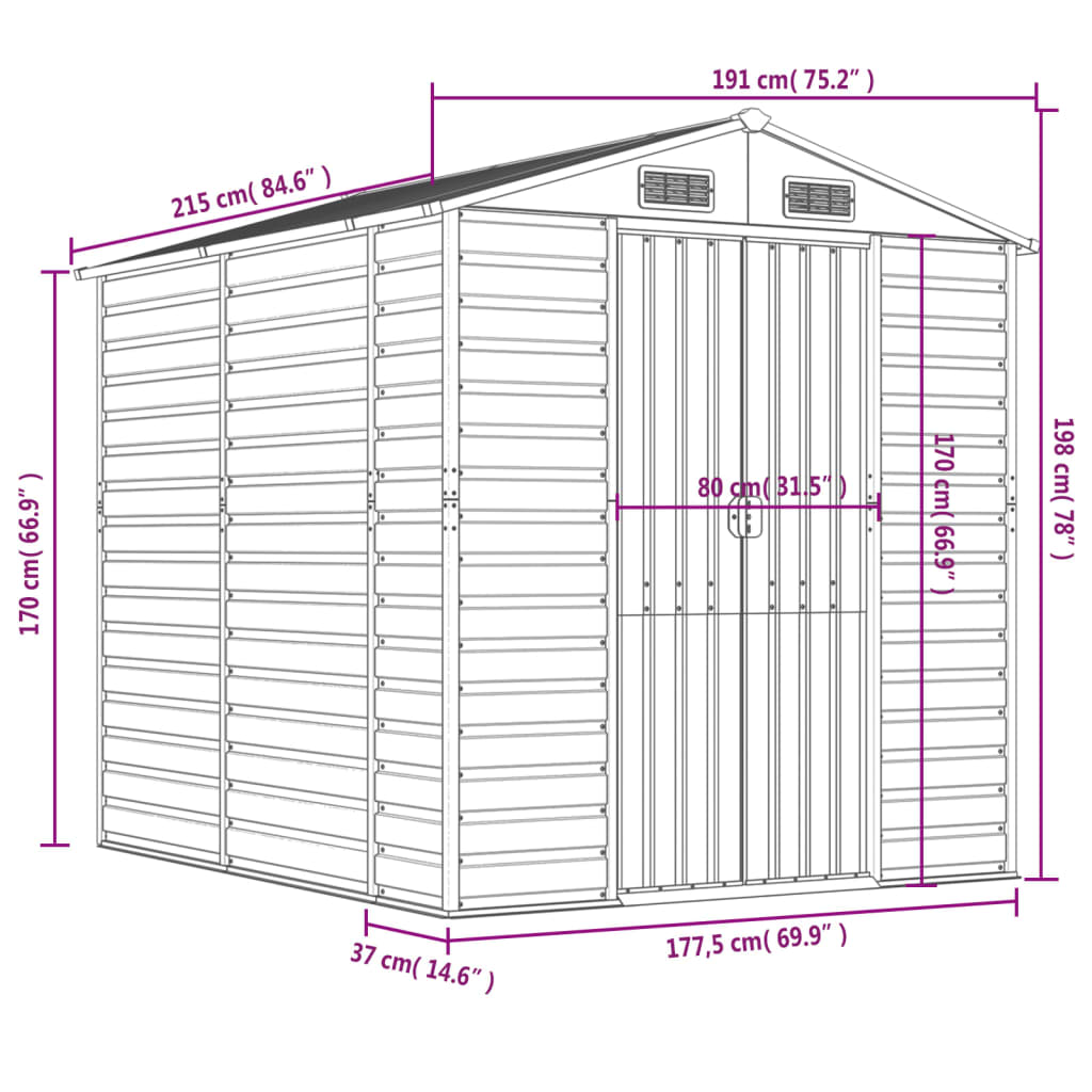 - Robust material: The garden tool shed is made of galvanised steel, which prevents rusting and endures long-time use. Steel is an exceptionally hard and strong material. It offers sturdiness and stability. Galvanisation provides better protection against corrosion and is useful for products that'll be used outdoors as well as in harsh environments.