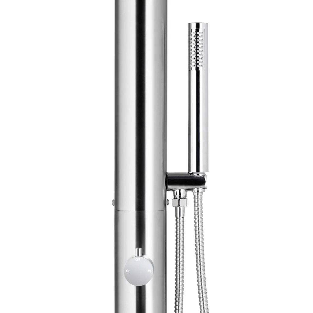 This outdoor shower is made of stainless steel, making it weather-resistance. The shower system has a waterfall head shower and a hand shower to meet your gardening, watering and quick showering needs. The hand shower features a double-locked flexible hose with a length of 1.5 m. It is also equipped with a brass hand shower holder.