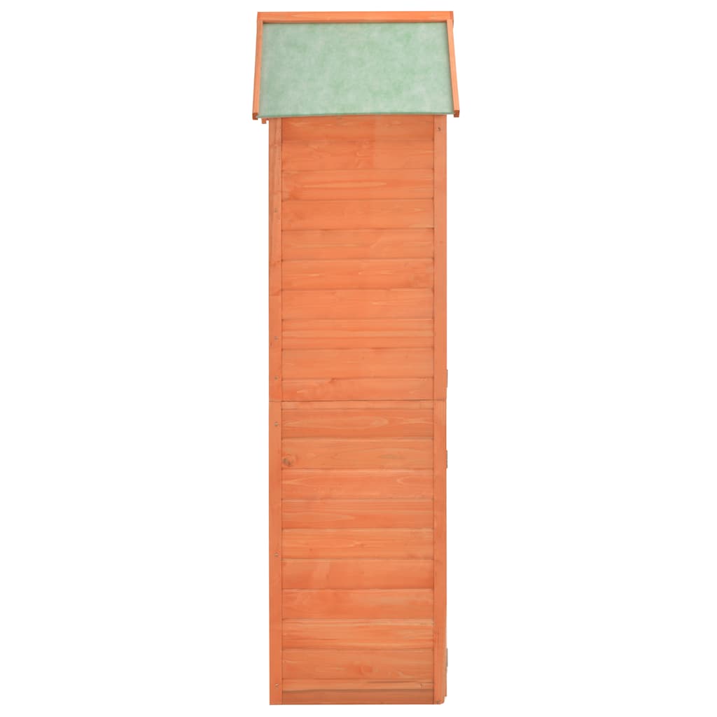 This wooden tool shed features a compact design and elegant look which allows it to fit any garden area. The storage shed provides a large space for storing a wide variety of tools and equipment.