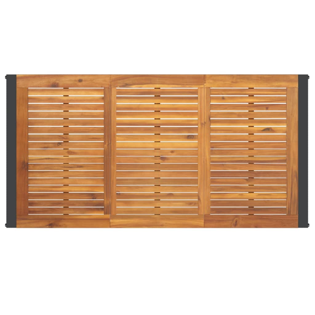 - Material: Solid acacia wood with an oil finish, powder-coated metal