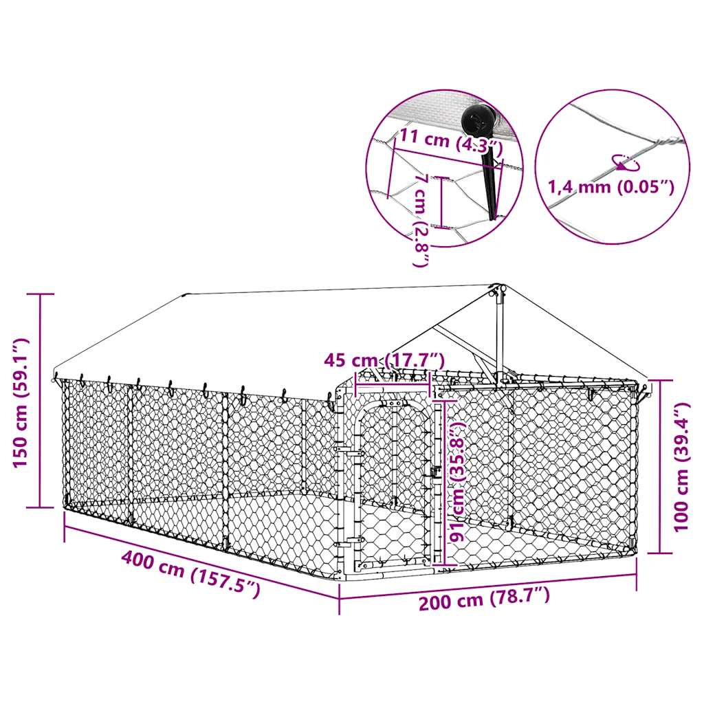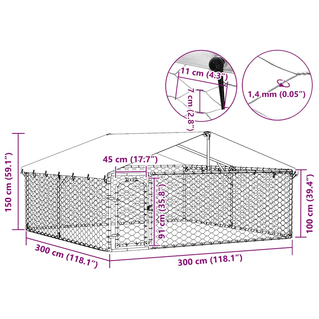 This large dog kennel provides ample exercise space while the mesh all around helps prevent mischief and unexpected accidents while enabling ventilation. Thanks to the sturdy and heavy-duty galvanised steel construction, this quality dog kennel is durable and built to last. Made of 100% polyethylene, the included top canopy is fire-resistant and UV protected, providing protection from sun, rain, snow, as well as other weather conditions. The hinged door with lockable latch system ensures extra security and safety for your dogs.