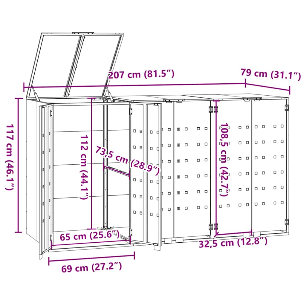 - :207 x 79 x 117 cm - 3 Bin