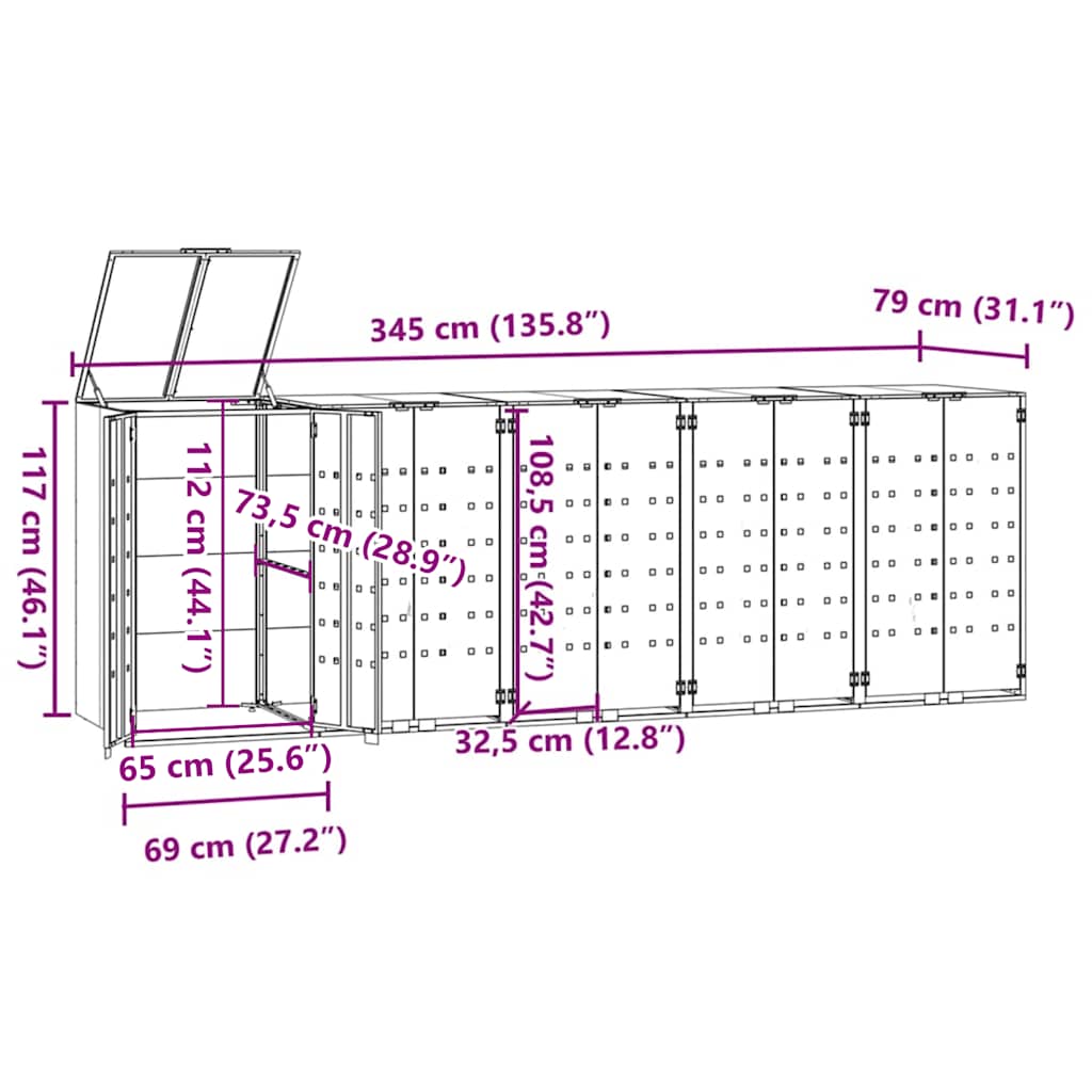 - :345 x 79 x 117 cm - 5 Bin