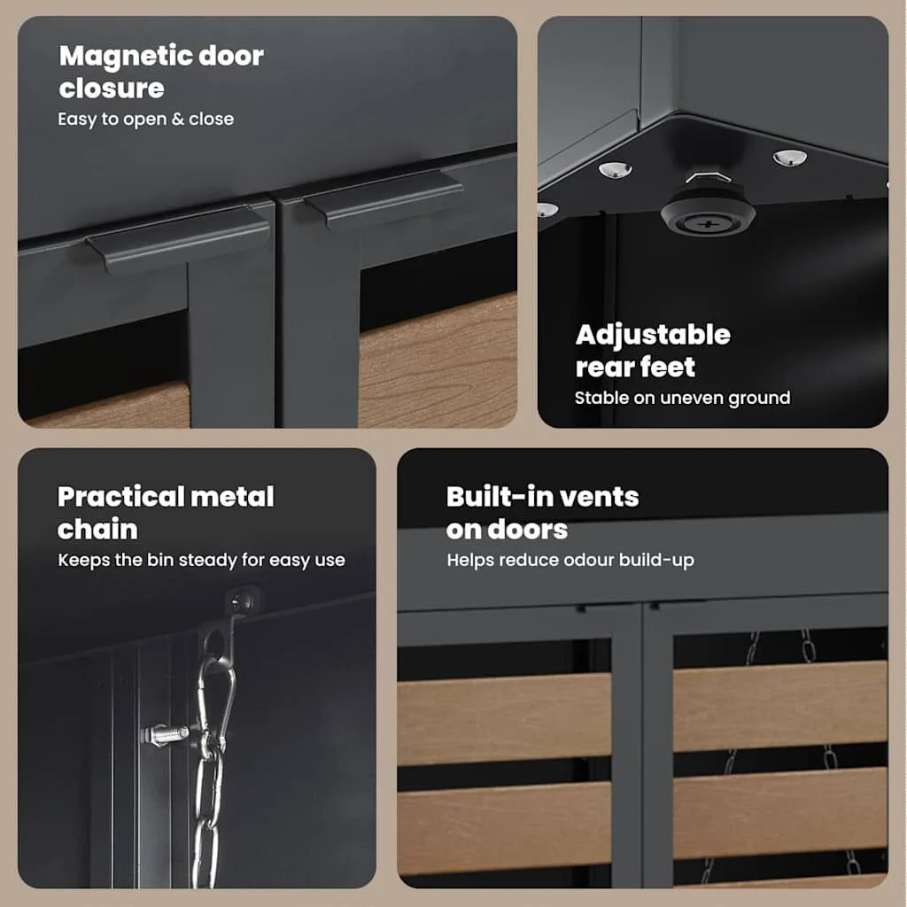 - Innovative Expandable Design: Its expandable framework offers unparalleled flexibility, adapting to suit different needs. Whether managing a single or multiple wheelie bins, its capacity can increase with additional sections, providing solutions for growing family requirements or space considerations. This thoughtful design ensures ultimate convenience and user adaptability.