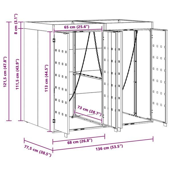 - Expandable Ventilated Design The bin storage is designed to be expandable, accommodating additional bins as your disposal needs grow. It features a sophisticated ventilated design ensuring air circulation, which helps eliminate odors by keeping the trash containers fresh. This makes it especially appropriate for households accumulating substantial garbage quantities.